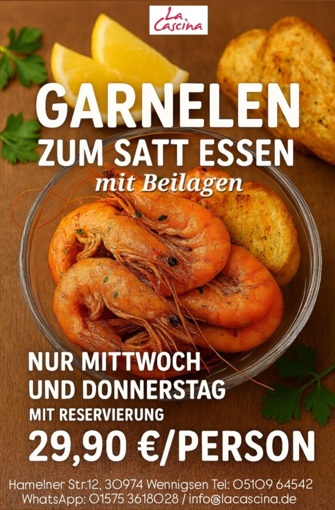 Unsere neue Speisekarte ist bald online! Viele neue Gerichte ab dem 1.3.2026 unter anderem: Garnelen zum satt essen
